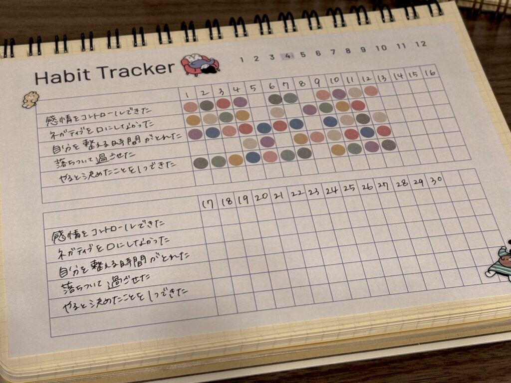 ハビットトラッカーの項目は、毎月月末に見直しています。
